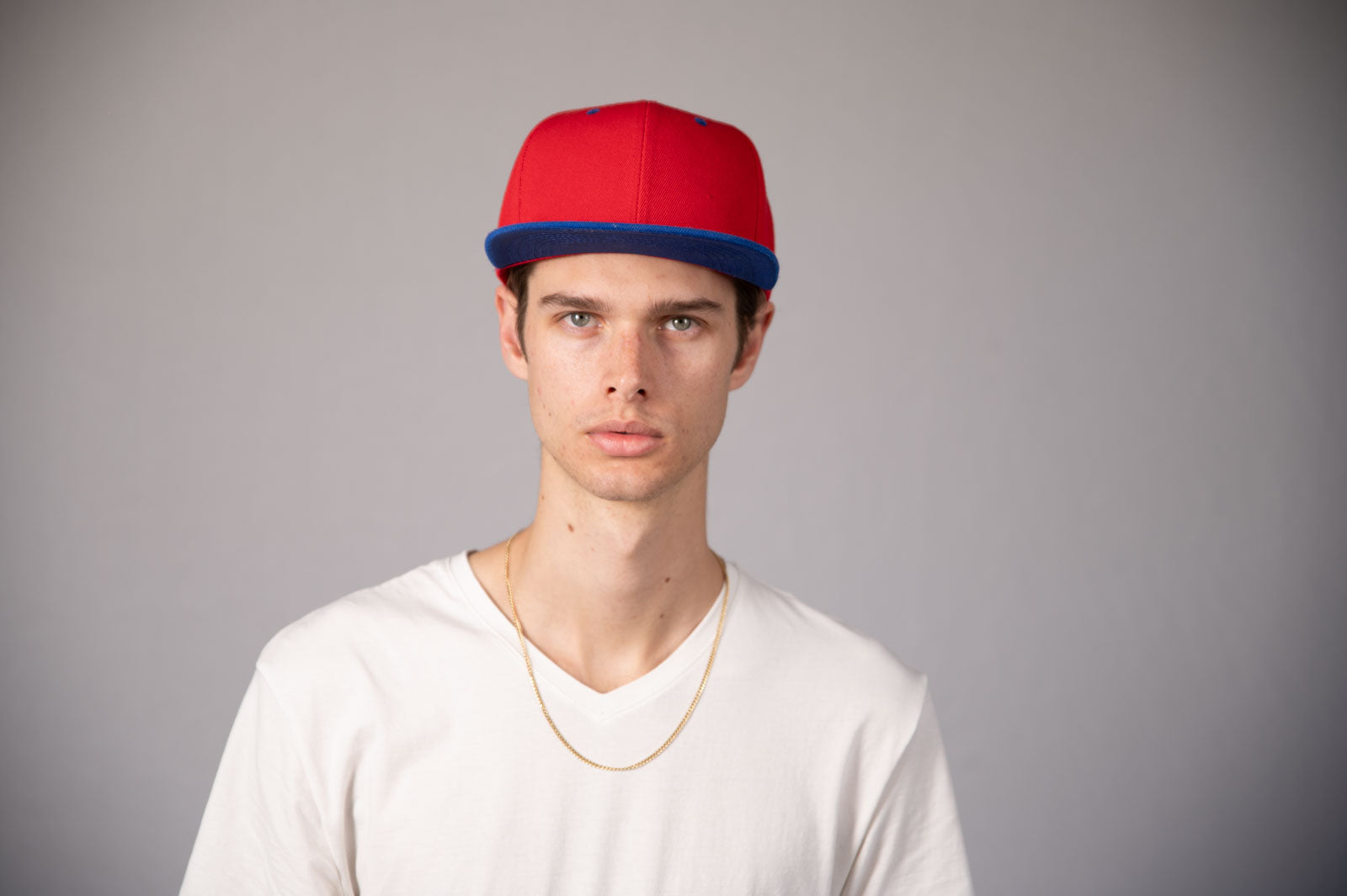 6-Panel Snapback (Flat Bill) — Red / Royal Blue Bill — Dozen Pack