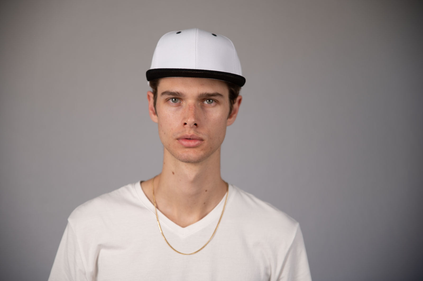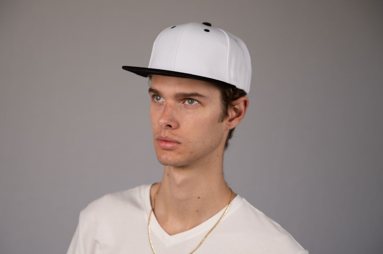 6-Panel Snapback (Flat Bill) — White / Black Bill — Dozen Pack